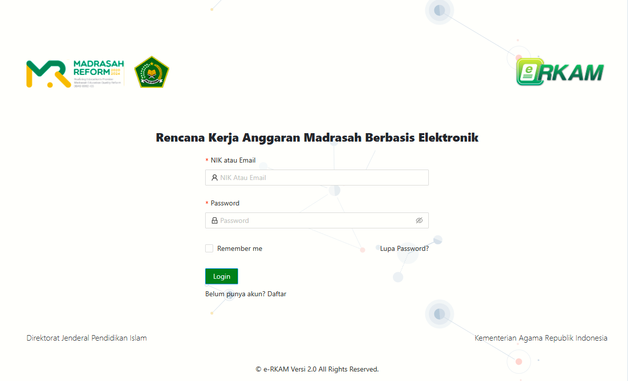 ERKAM adalah sistem elektronik yang digunakan untuk mengatur perencanaan dan pelaporan anggaran madrasah. Platform ini berada di bawah pengelolaan Kementerian Agama Republik Indonesia sebagai bagian dari digitalisasi administrasi pendidikan Islam.