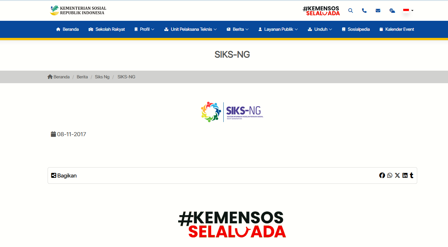 Liputankutim.id-Sistem Informasi Kesejahteraan Sosial Next Generation atau SIKS-NG merupakan platform resmi milik Kementerian Sosial yang digunakan untuk mengelola data bantuan sosial secara nasional. Sistem ini menjadi pusat pengelolaan Data Terpadu Kesejahteraan Sosial (DTKS) yang digunakan sebagai dasar penyaluran berbagai program bantuan pemerintah.