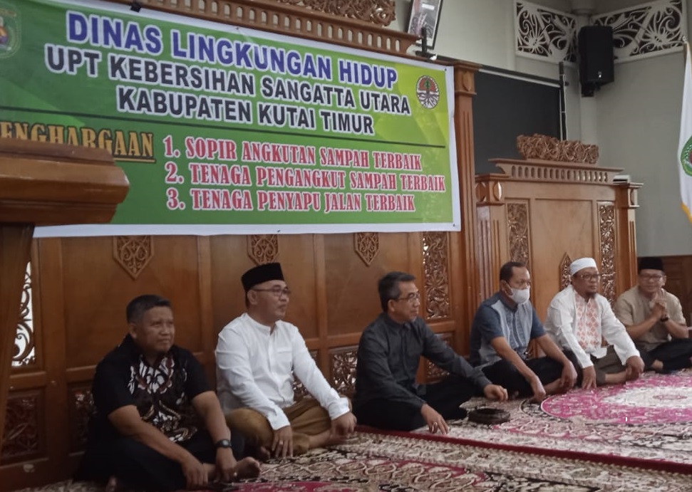 Penghargaan diberikan di Pendopo Rujab Bupati Kutim disaksikan Kepala DLH Kutim Armin Nazar, Kepala Bidang Persampahan Sugiyo dan para petugas UPT Kebersihan Sangatta Utara, pada Minggu, 30/04/2023.