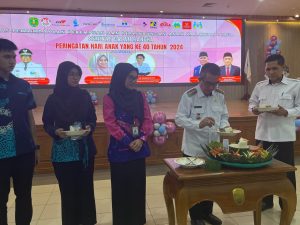 Acara terakhir dari rangkaian peringatan Hari Anak Nasional ke 40 di Kutai Timur dengan pemtongan tumpeng oleh bupati Ardiansyah Sulaimn dan diberikan kepada Kepala DP3A, Idham Cholid dan Ketua Panitia yang juga Kepala Bidang Pemenuihan Hak Anak Rita Winarni kemudian penyerahan hadiah kepada masing-masing juara-juara lomba lima kategori. ( sapta/liku)